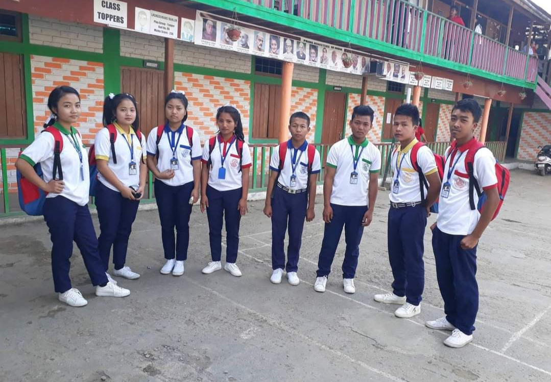 Class IX & X: White shirt, Black phanek, neck tie, School socks, school belt and black shoes. School Jersey in winter